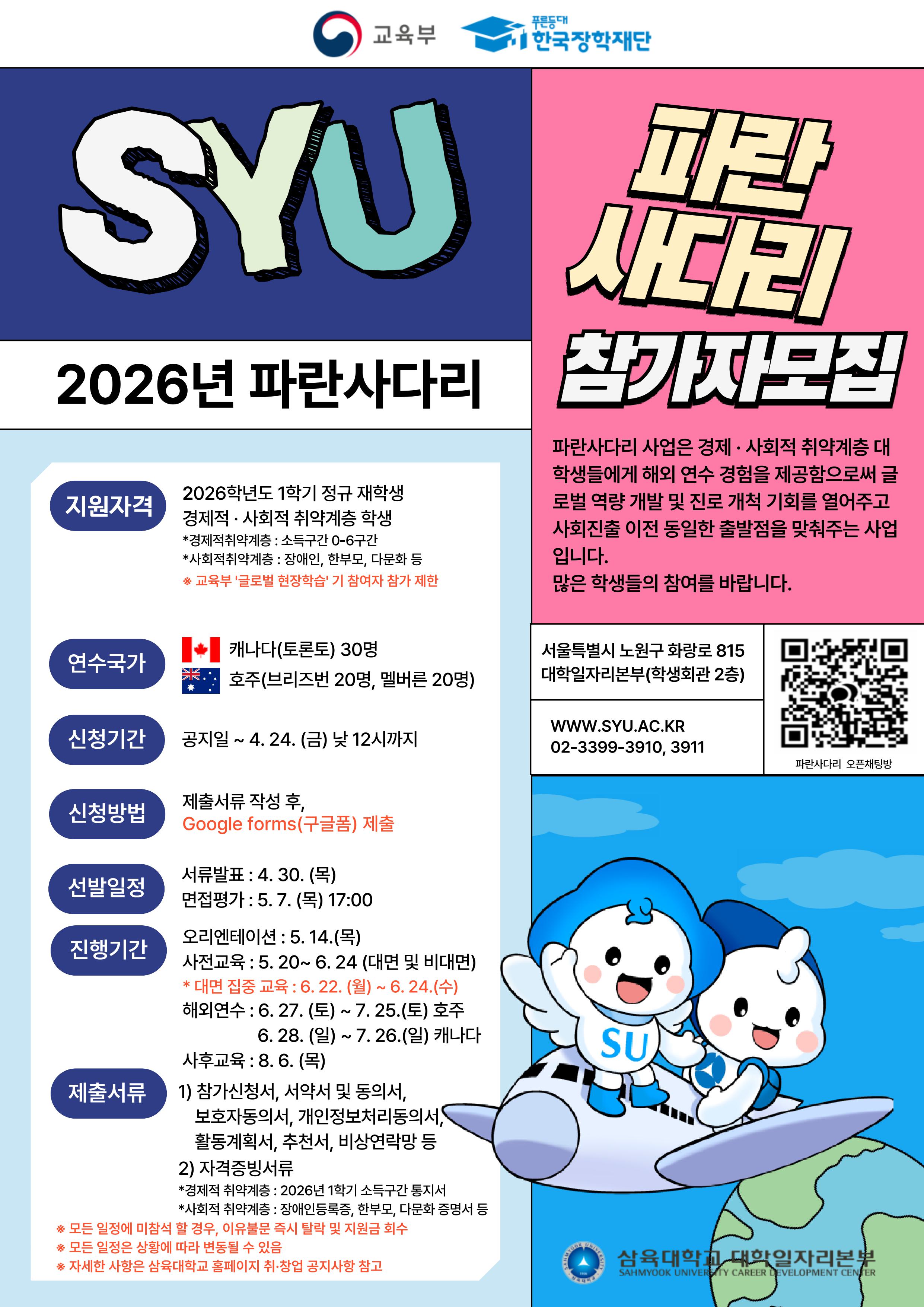fnctId=bbs,fnctNo=145 2026년 파란사다리 참가자 모집 안내 작성일2026.04.14 수정일2026.04.14 작성자 김*린 조회수1429 첨부파일 붙임2_2026년 파란사다리 1유형 참가양식(서식1-첨부7).hwp