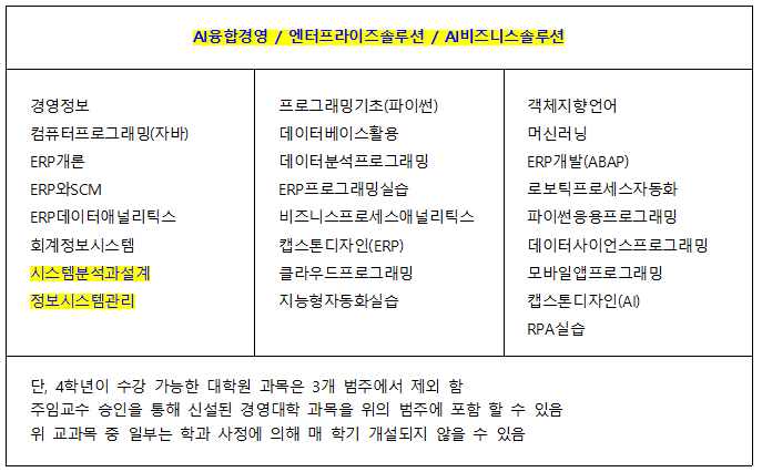 ★ [참고] 경영정보학과 3개 트랙에 속하는 교과목명